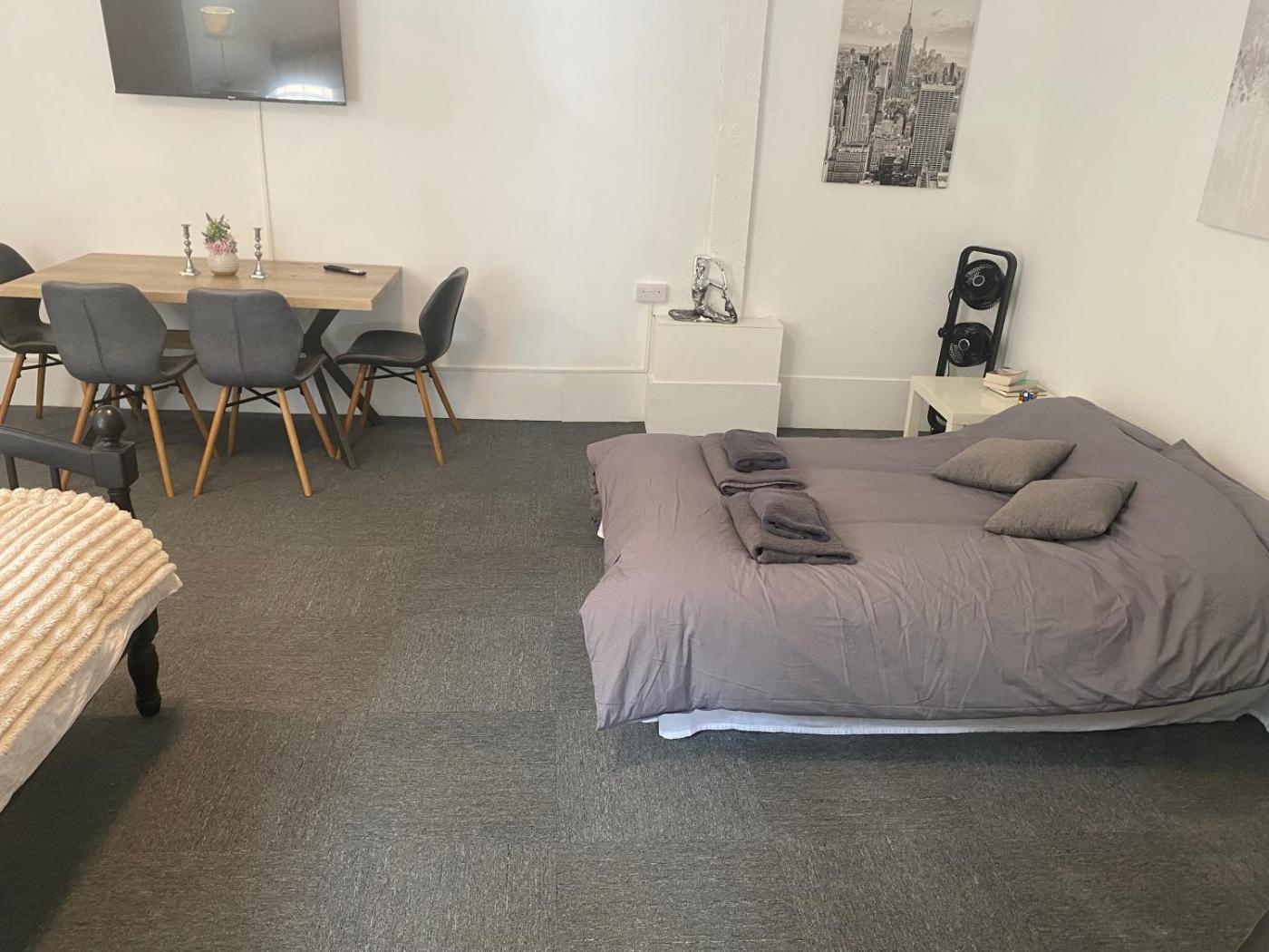 One-Bedroom Apartment. The apartment features 1 bedroom, 1 bathroom and a kitchen. The apartments kitchen is available for cooking and storing food. This apartment provides heating and a flat-screen TV. The unit offers 3 beds.
