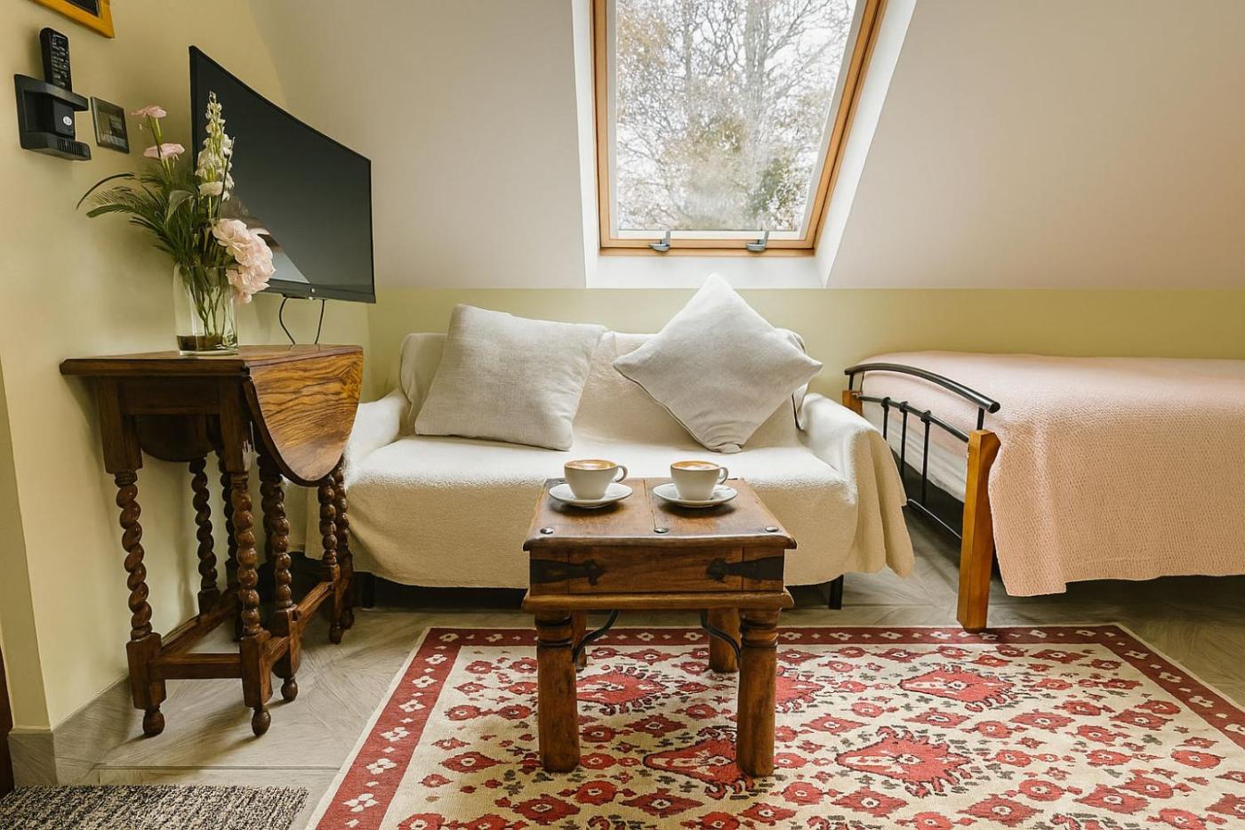 Deluxe Studio. The studio provides a washing machine, a private entrance, as well as a private bathroom featuring a walk-in shower and a hairdryer. The well-equipped kitchen features a stovetop, a refrigerator, kitchenware and a microwave. The studio features a flat-screen TV, soundproof walls, a dining area, an electric kettle as well as garden views. The unit offers 4 beds. ;