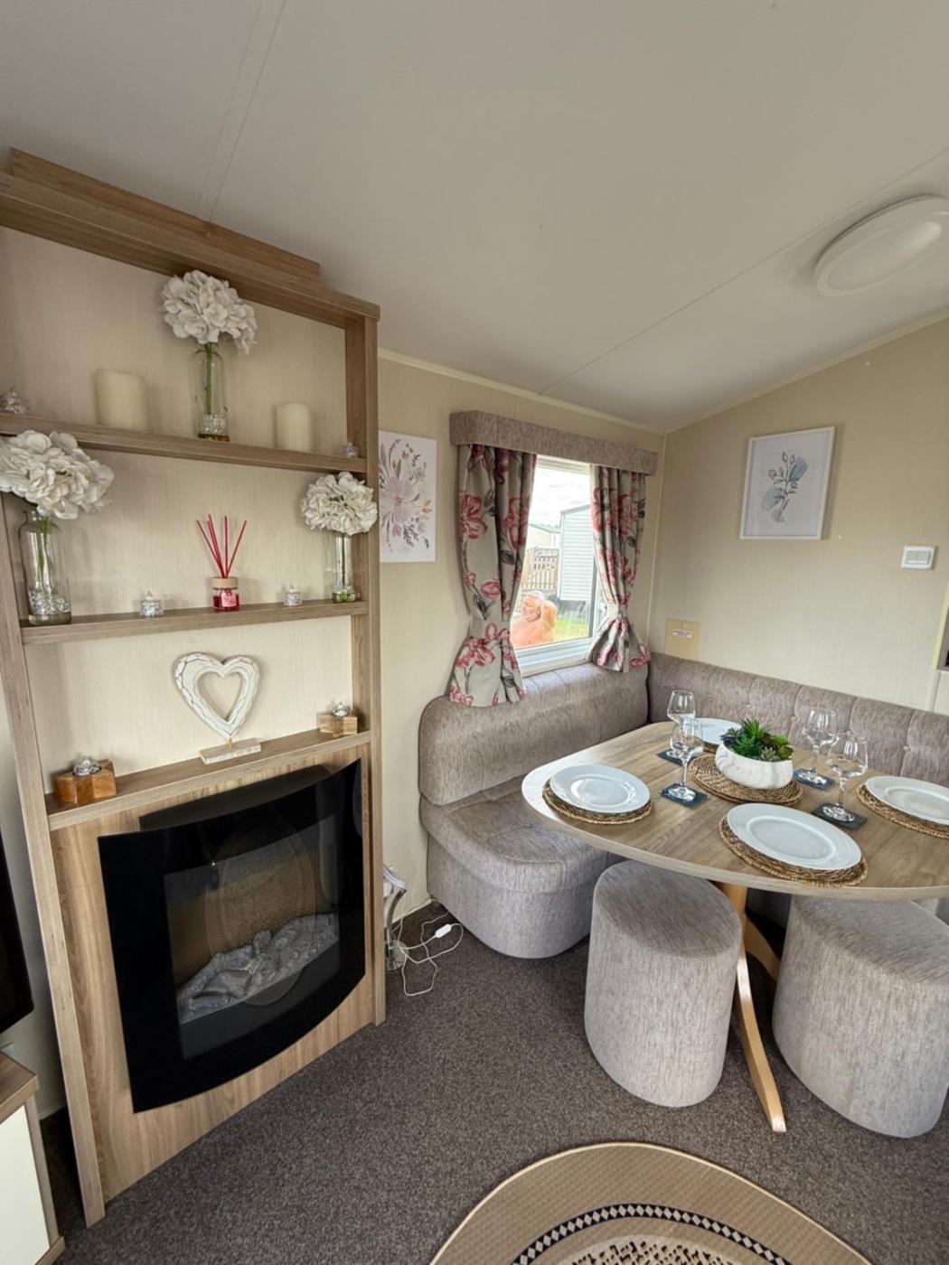Caravan. This mobile home provides a fireplace. Boasting a private entrance, this mobile home includes 1 living room, 2 separate bedrooms and 1 bathroom with a shower and a hairdryer. Guests will find a stovetop, a refrigerator, kitchenware and an oven in the well-fitted kitchen. The mobile home also features a barbecue. Featuring a terrace with garden views, this mobile home also offers a tea and coffee maker and a flat-screen TV with streaming services. The unit has 4 beds.
