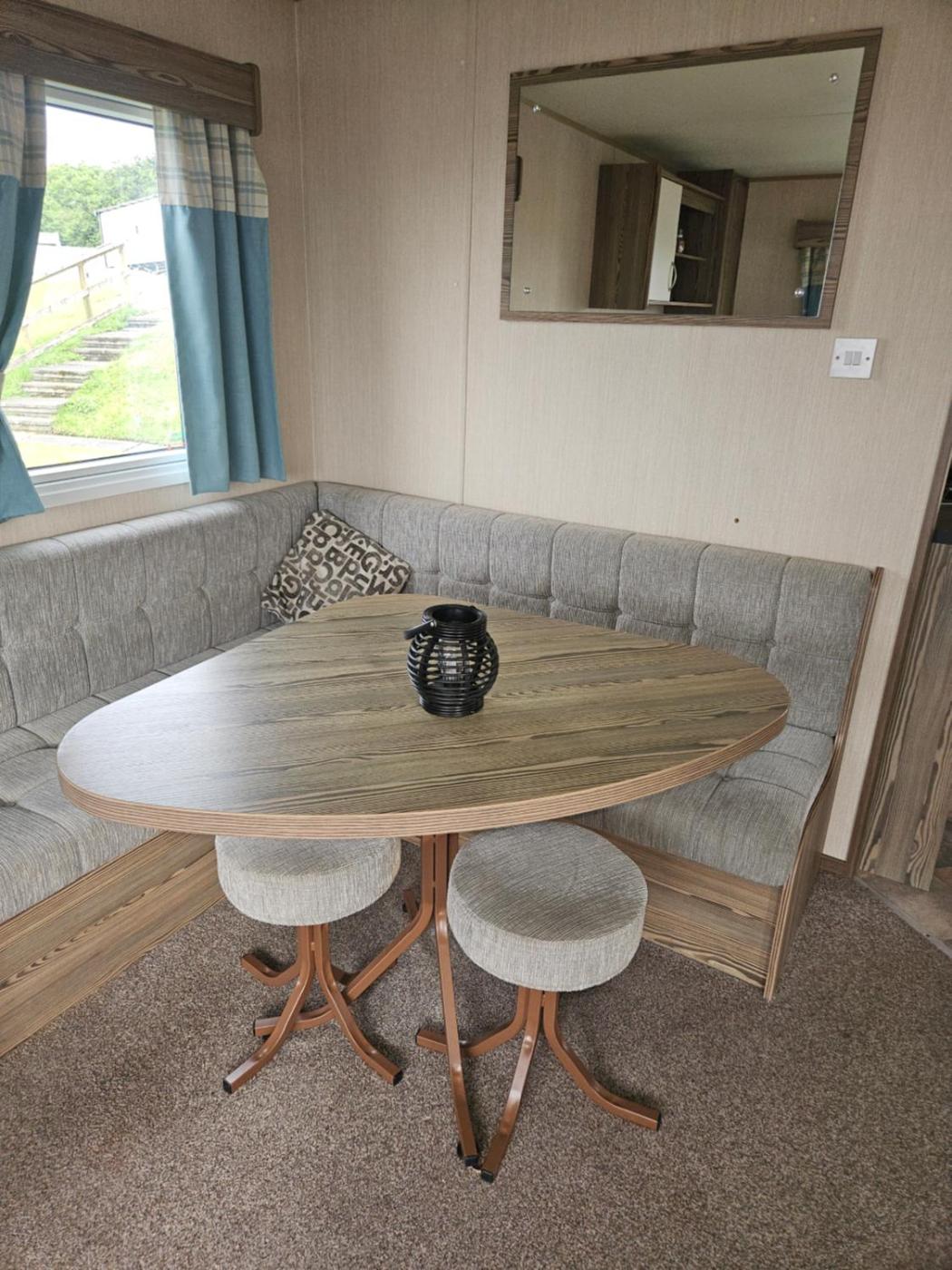 Caravan. This mobile home offers a fireplace. Featuring a private entrance, this mobile home comprises 1 living room, 3 separate bedrooms and 2 bathrooms with a shower and a hairdryer. Meals can be prepared in the well-fitted kitchen, which comes with a stovetop, a refrigerator, kitchenware and an oven. The mobile home provides a flat-screen TV with streaming services, a seating area, a dining area, a wardrobe as well as sea views. The unit offers 5 beds.