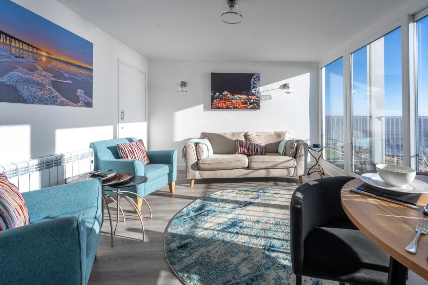 Holiday Home. This holiday home comes with 1 living room, 2 separate bedrooms and 1 bathroom with a hairdryer. The holiday homes kitchen, which has a dishwasher, is available for cooking and storing food. Boasting a balcony with sea views, this holiday home also features a washing machine and a TV. The unit has 3 beds.