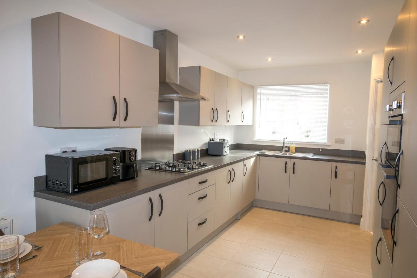 Three-Bedroom House. In the well-equipped kitchen, guests will find a stovetop, a refrigerator, an oven and a microwave. The holiday home offers a washing machine, a tea and coffee maker, as well as a private bathroom boasting a shower and a hairdryer.