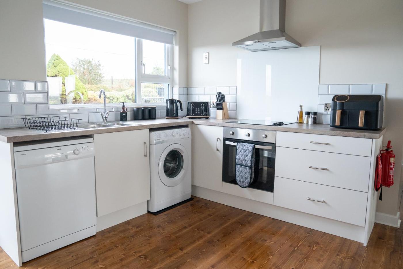 Three-Bedroom Holiday Home. This holiday homes standout features are the hot tub and fireplace. This spacious holiday home features 1 living room, 3 separate bedrooms and 1 bathroom with a walk-in shower and free toiletries. Meals can be prepared in the kitchen, which has a stovetop, a refrigerator, a dishwasher and kitchenware. Boasting a terrace with garden views, this holiday home also features a washing machine and a flat-screen TV with streaming services. The unit has 3 beds.