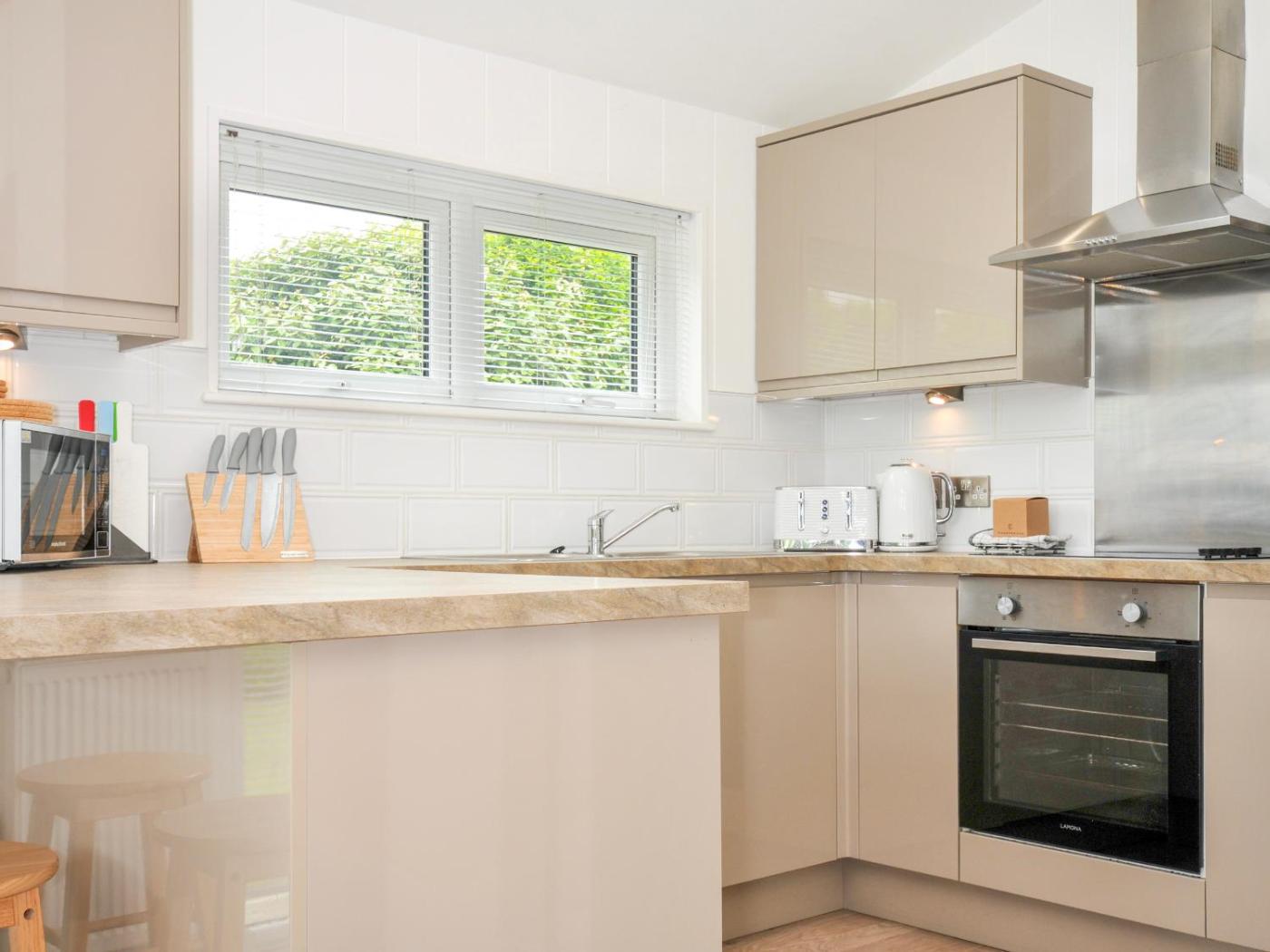 The holiday home has 1 bedroom, a TV, a fully equipped kitchen with a dishwasher and an oven, a washing machine, and 1 bathroom with a hot tub. There is also a seating area and a fireplace.