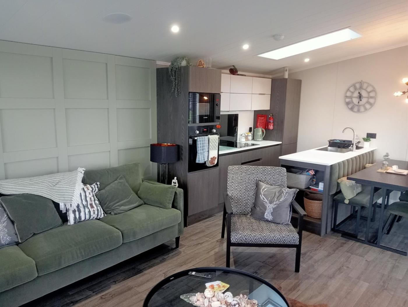 The campground with a terrace and lake views features 2 bedrooms, a living room, a flat-screen TV, an equipped kitchen with a dishwasher and an oven, and 2 bathrooms with a shower. Towels and bed linen are provided in the campground. There is also a seating area and a fireplace.