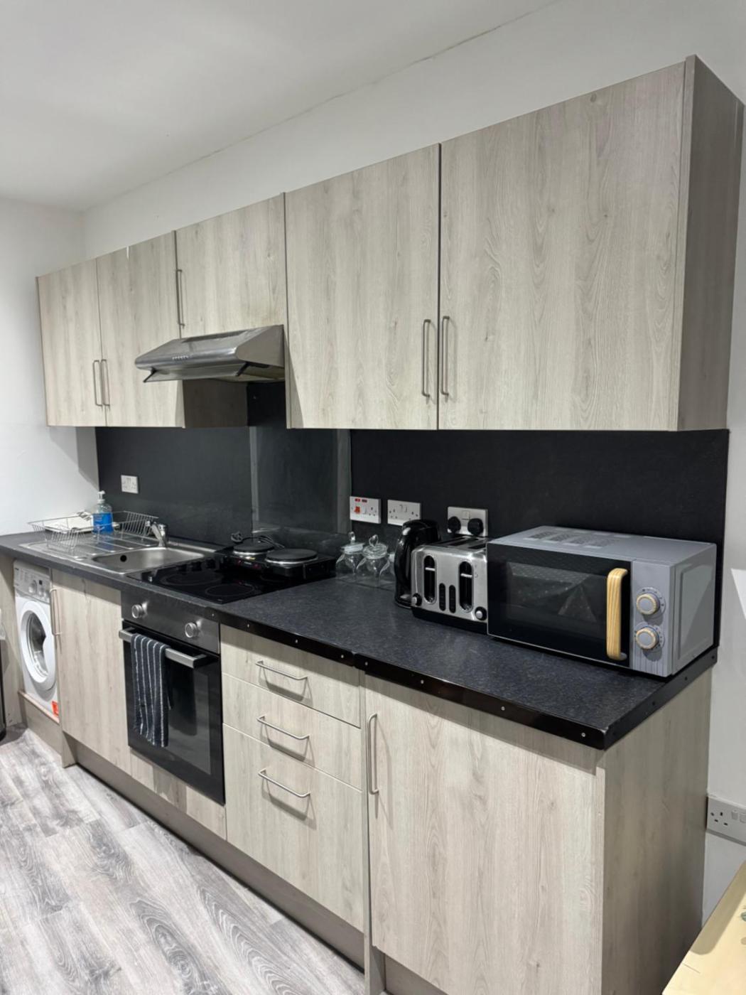Two-Bedroom Apartment. Guests can make meals in the kitchen that is fitted with a stovetop, a refrigerator, kitchenware and an oven. The spacious apartment offers a washing machine, a private entrance, a tea and coffee maker, a seating area, as well as a flat-screen TV. The unit has 6 beds.