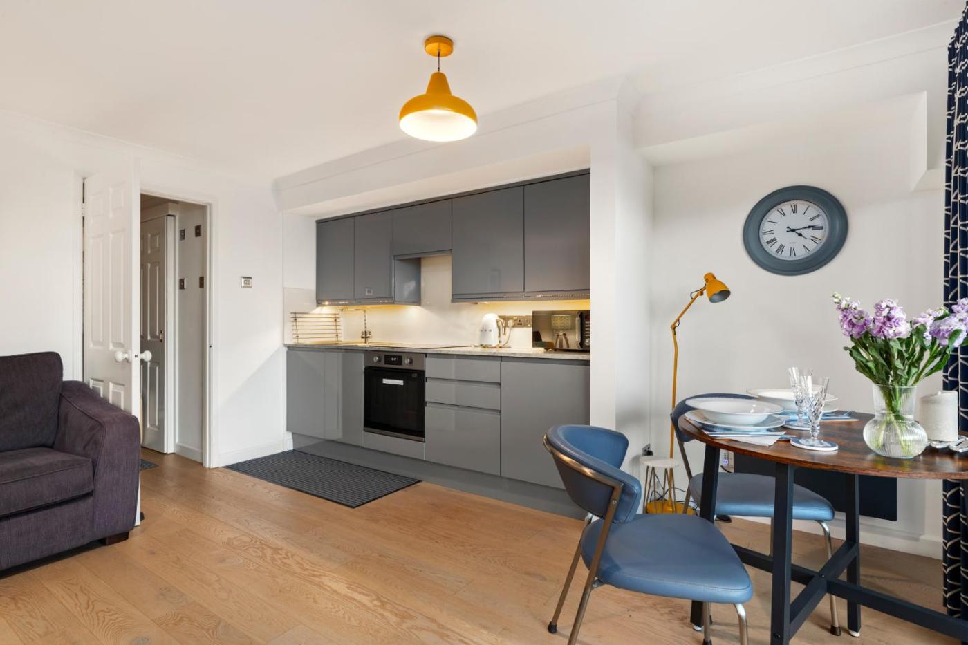 One-Bedroom Apartment. This spacious apartment includes 1 bedroom, a seating area with a sofa and 1 bathroom with a walk-in shower. Guests can make meals in the kitchen that is fitted with a refrigerator, a dishwasher, kitchenware and an oven. Among the room amenities are a tea and coffee maker, a dining area, a wardrobe as well as a patio and sea views. The unit has 1 bed.