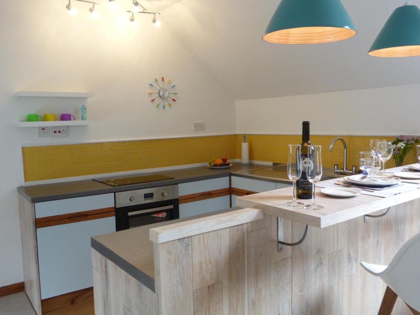 The Hayloft. This apartment features a fireplace. This spacious apartment features 1 living room, 1 separate bedroom and 1 bathroom with a bath and a shower. Guests will find a stovetop, a refrigerator, a dishwasher and kitchenware in the kitchen. The apartment also comes with a barbecue. Boasting a terrace with garden views, this apartment also features a private entrance and a flat-screen TV with satellite channels. The unit has 1 bed. ;